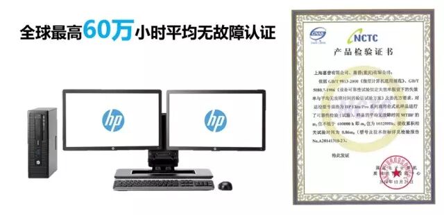 EliteDesk系列商用台式机,通过了全球最高60万小时平均无故障认证,达到国家标准150倍,远超友商同类产品。成为全球运行最稳定,寿命最持久的商用台式机。
